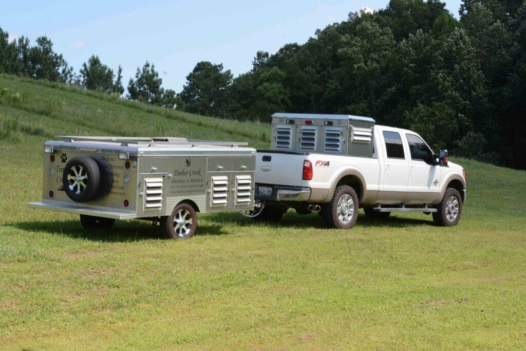 For transport, Timber Creek dogs ride in style…and safety…and security. Our custom-made truck and trailer provide an exceptionally comfortable ride with climate control and water in addition to a locked, safe compartment to ride in.